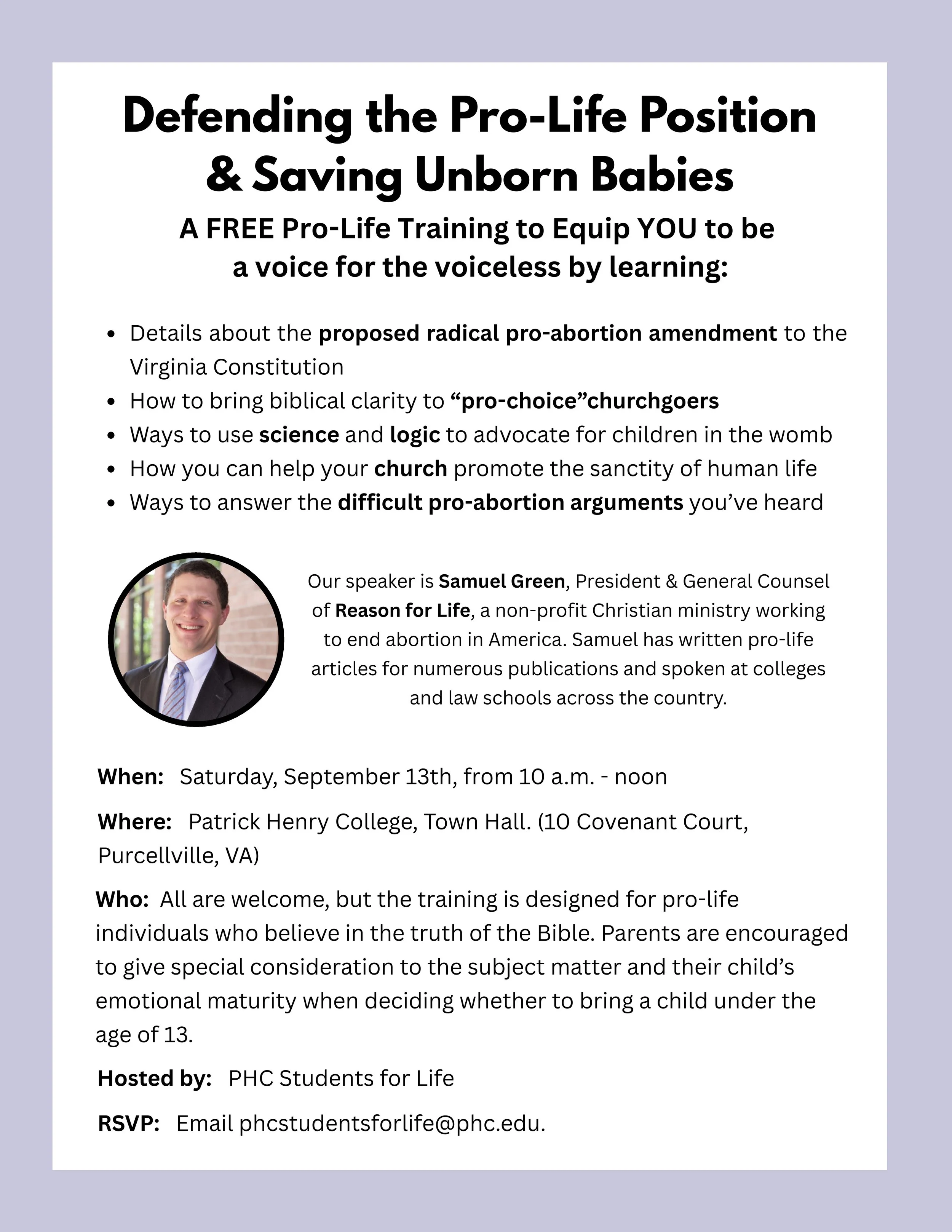 This event is for pastors. If you’re not a pastor, we hope you can join us at the “Pro-Life Bootcamp” in Lynchburg!